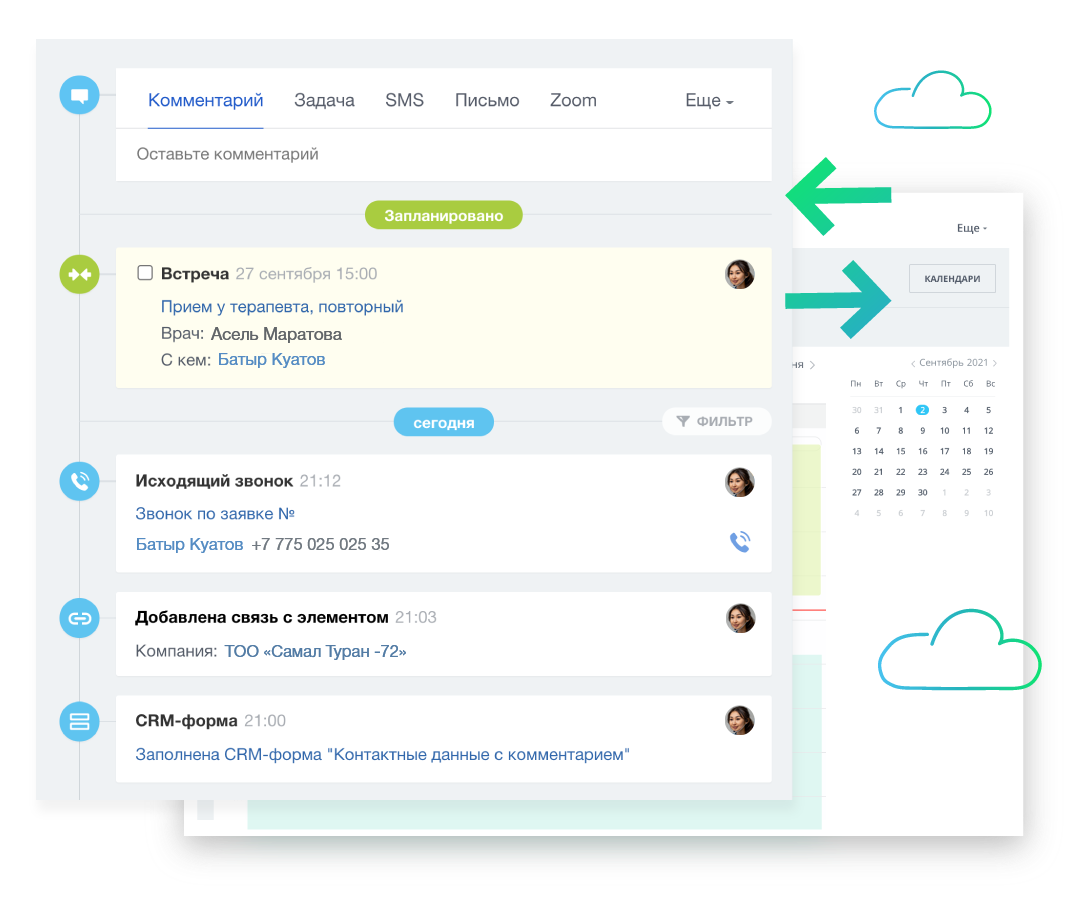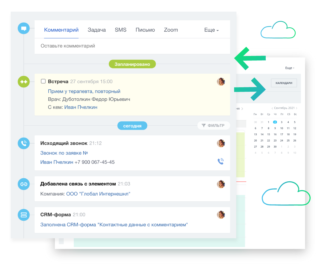 Звоните прямо из CRM, создавайте сценарии распределения звонков, прослушивайте разговоры и храните всю историю взаимодействия с клиентом в его карточке.